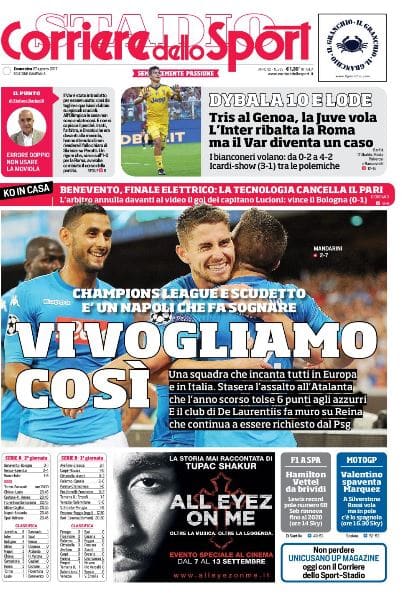 Torna il campionato al San Paolo, oggi alle 20.45, e soprattutto torna l’Atalanta: l’unica squadra capace di battere il Napoli due volte su due nella stagione precedente, nonché l’unica a non subire gol dall’attacco nucleare tinto d’azzurro.