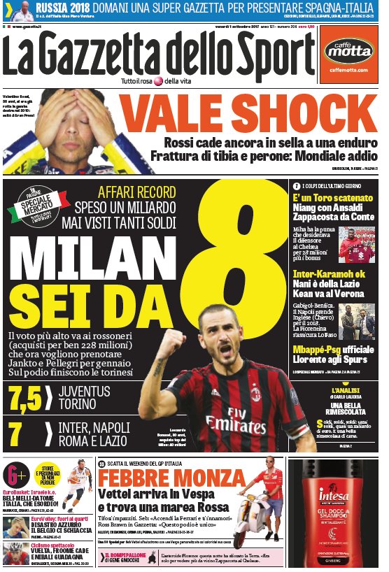 CalcioIn EvidenzaNews Edicola sport – Le prime pagine nazionali By Giuseppe Sacco il Set 1, 2017 - 07:35:49 0 Condividi Oggi in primo piano Factory della Comunicazione CalcioEdicolaPagineprime 0 Condividi FacebookTwitterGoogle+ReddItWhatsAppPinterestE-mail