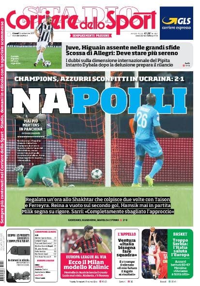 Il Napoli di Sarri ko dopo dieci vittorie consecutive. E’ la «crisetta» di questo settembre del calcio italiano, che in Champions coglie soltanto il pareggio della Roma: 2-1 per lo Shakhtar, con una spia che lampeggia dinnanzi a Sarri, perché c’è voluta mezz’ora per trovare il Napoli e farlo riemergere (ma faticosamente) dalle brume d’una gara insidiosa, quasi riafferrata con Mertens in campo. Il girone teoricamente blando in realtà è più insidioso di quello che appare, perché lo Shakhtar gioca un calcio che ha tempi e identità: ma il Napoli scorge in sé lacune, soprattutto atletico (sta rifiatando, dopo l’avvio brillante) sui cui interrogarsi.