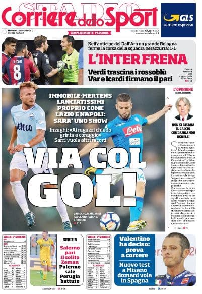 E le stelle stanno a guardare: da Parigi e Manchester, dal Principato di Monaco e da Barcellona, da Dortmund e da Madrid, da quest’Europa che immergendosi con la testa nel pallone scopre che l’epicentro della «rivoluzione» nasce ed esplode nel modernismo napoletano, quindici gol (in campionato) tutti d’un fiato – e in quattro gare – per prendersi un trono e sentirsi re (almeno) per una notte ancora. E’ il calcio 3.0, è una diavoleria che comprende tagli, sovrapposizioni, irruzioni, veroniche e freschi merletti, utili per abbellire il San Paolo o qualsiasi stadio in cui vada in onda lo show: 3,75 reti a partite e la percentuale che fa la differenza con quei giganti che ondeggiano tra il Paris Saint Germain e il Barcellona, il Borussia Dortmund e le due Manchester, in una classifica che l’Uefa ha esposto con dovizia di particolari e nella quale (ma guarda un po’) mancano il Real Madrid e anche il Bayern Monaco.  Fonte: CdS