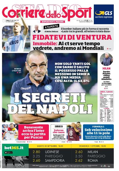 Provare a descrivere con i numeri il calcio di Sarri può sembrare un esercizio bizzarro, misurandoli con un grafico? Storcerebbe il naso anche il tecnico azzurro, grande amante della letteratura. Eppure, strano a dirsi ma è così, la fredda logica dell’aritmetica restituisce pienamente il senso del calcio predicato dal suo Napoli da due anni (e un po’) a questa parte. Un calcio nel quale l’estetica, il gusto per la qualità e le giocate eleganti, non sono mai un qualcosa di fine a se stesso: è attraverso quest’idea di bellezza, di coralità, di armonia dei movimenti, con e soprattutto senza palla, che gli azzurri vogliono arrivare al risultato. Attaccare senza speculare, insomma. E i numeri delle prime sei giornate confermano esattamente questo. Fonte: CdS