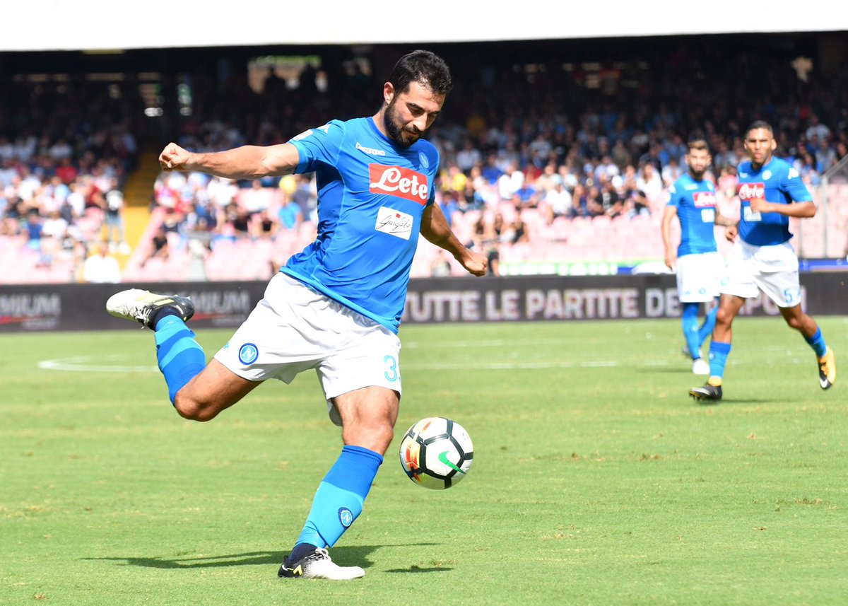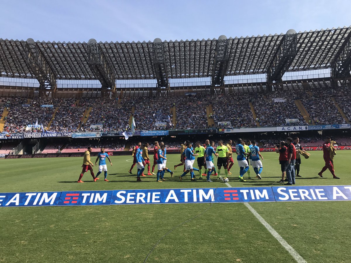 1′ minuto: calcio di inizio al San Paolo. Primo pallone per il Napoli. In 15 secondo il Napoli già crea un’occasione ghiotta con un colpo di testa di Insigne