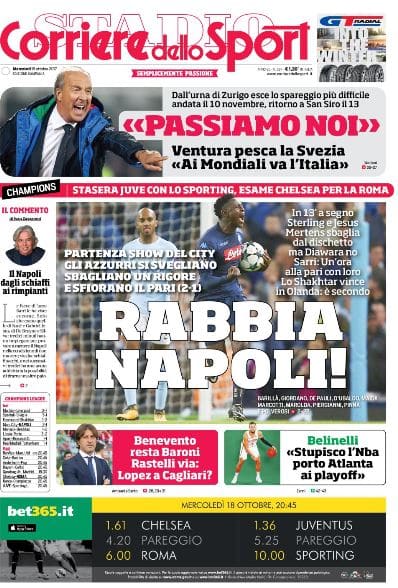 Il City è più forte, e si sapeva, ma il Napoli per un’ora è stato alla sua altezza, e questo ancora non si sapeva. A Manchester ha passato mezz’ora da incubo, rischiando il naufragio, ma alla fine aveva perfino qualcosa da rimpiangere, il primo rigore sbagliato da Mertens. Se non come gioco, almeno come personalità la squadra di Sarri non va bocciata. Il problema è che la sconfitta all’Etihad, con la contemporanea vittoria dello Shakhtar, lo mette nelle condizioni di non poter sbagliare più un risultato, a cominciare dal ritorno col City al San Paolo fra 15 giorni.