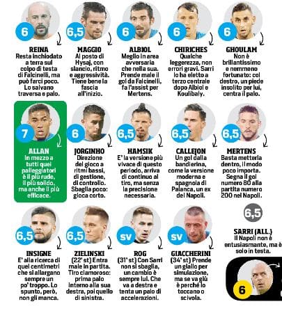 Pagelle CdS: Allan è rudo, solido, efficace. Hamsik molto vivace!