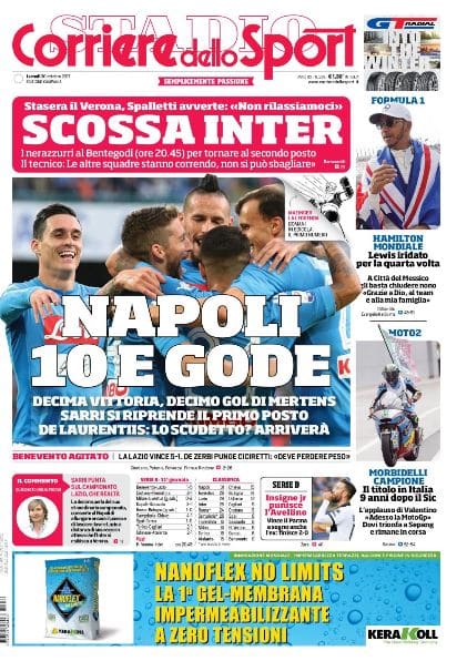 NewsCalcioIn Evidenza Rassegna stampa. Edicola delle prime pagine By Giuseppe Sacco il Ott 30, 2017 - 07:19:08 0 Condividi Oggi in primo piano troviamo: Factory della Comunicazione 1 giornata Napoli-Bologna 3-0EdicolaNapoliPagine 0 Condividi FacebookTwitterGoogle+ReddItWhatsAppPinterestE-mail