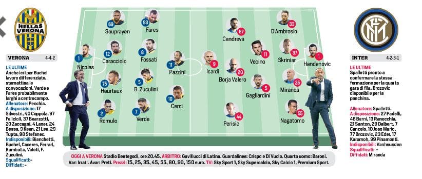 Con le stesse ali e, per la quarta gara di fila, con la stessa formazione. Obiettivo andare a caccia della miglior partenza in campionato della storia nerazzurra e superare il record del 1997-98 (27 punti dopo 11 giornate con Simoni in panchina e Ronaldo in campo). Al netto di sorprese che Spalletti ieri ha praticamente escluso, l’Inter al Bentegodi indosserà lo stesso “vestito” delle sfide con Milan, Napoli e Sampdoria. L’imperativo è conquistare i tre punti, cosa che in trasferta è successa solo in uno degli ultimi tre viaggi (a Benevento, in mezzo ai pareggi di Bologna e Napoli). Rispetto alle ultime tre apparizioni esterne, però, il tecnico toscano sente di avere un’arma in più: il ritorno su ottimi livelli dei suoi esterni offensivi, Antonio Candreva e Ivan Perisic.
