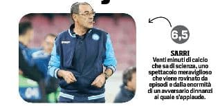 SARRI Venti minuti di calcio che sa di scienza, uno spettacolo meraviglioso che viene rovinato da episodi e dalla enormità di un avversario dinnanzi al quale s’applaude.