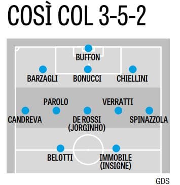In caso di 3- 5-2 prenderebbe forma il paradosso dei paradossi: Lorenzo Insigne, il miglior azzurro del momento, rischierebbe di restare fuori. Difficile collocare «Lorenzito» nella cornice del 3-5-2, se non forse come seconda punta/trequartista.