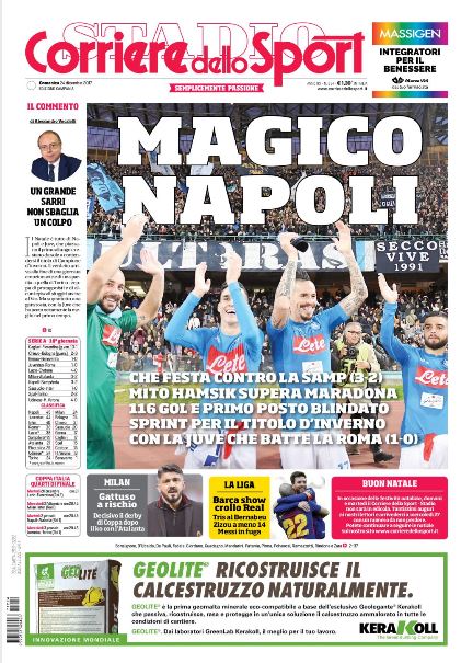 Gratulujem, rekordér! Che in slovacco, la lingua madre del signore dei gol della storia del Napoli, significa: congratulazioni, uomo dei record. Omaggio dovuto, meritato come la doppia standing ovation da accapponar la pelle e i cori intonati dal San Paolo: Marek Hamsik è il nuovo sovrano. Unico e solo: inchino a Maradona, ex tronista da 115 gol, e poi via con l’incoronazione del popolo azzurro. La storia è tua, re Marek: 116 reti sono il marchio, le firme che partono da lontano e anche i segni del destino di un predestinato. E’ cronaca: il capitano ha eguagliato il primato con il Toro e poi l’ha migliorato con la Samp, la prima squadra contro cui segnò in campionato il 16 settembre 2007, (più o meno) dieci anni dopo il suo arrivo. Dieci: il numero da museo della maglia del Diego. «Ancora non mi rendo conto». E’ tutto vero: olé, Marek.