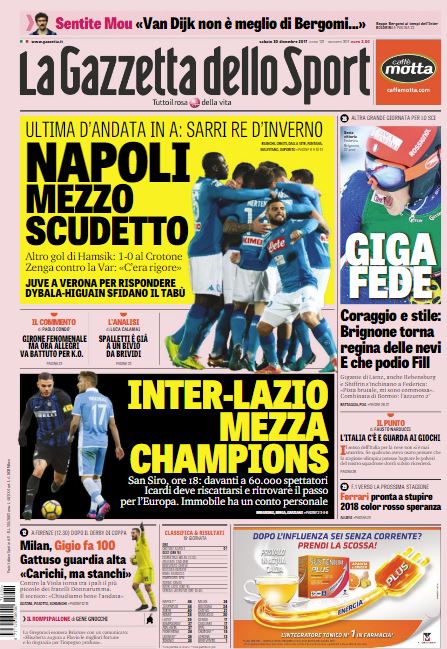 NewsCalcioIn Evidenza Rassegna stampa – L’edicola nazionale del 30 dicembre By Giuseppe Sacco il Dic 30, 2017 - 07:10:03 0 Condividi Oggi in primo piano sui quotidiani nazionali Factory della Comunicazione Edicolapaginpagine.rassegnaprime 0 Condividi FacebookTwitterGoogle+ReddItWhatsAppPinterestE-mail
