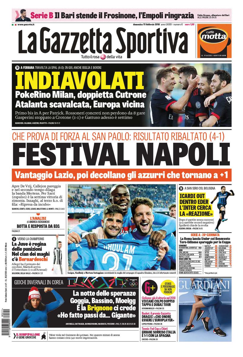 E a un certo punto, il Napoli accese il turboreattore e si avvicinò alla bellezza delle stelle. Il più grande spettacolo dopo il big bang, nel nostro calcio spesso noioso. Un’impressionante dimostrazione di qualità, forza e soprattutto carattere, in una serata delicata per tanti versi. C’era la consapevolezza di aver perso ancora Ghoulam per molto (omaggiato all’inizio dai compagni che hanno indossato una maglia col suo numero, il 31). L’infortunio dell’ultima ora di Chiriches, che si aggiungeva ad Albiol, e dunque l’esordio stagionale assoluto di Tonelli. Questo nella cornice della Juve ritornata in testa dopo Firenze e la bella Lazio ferita da due sconfitte consecutive davanti. Beh, il campionato è una corsa a tappe e quelle decisive fanno la differenza. Questa era una delle tappe delicate e il Napoli l’ha superata alla grande, arrivando di slancio al traguardo dopo la caduta nel primo chilometro. Eccolo qui il carattere vincente, quello costruito con il patto dell’estate: restiamo tutti per lo scudetto. Il carattere che non ha la Lazio, bella e fragile. È finita come all’andata: 4-1. Ma è stata tutta un’altra storia. All’Olimpico la squadra di Inzaghi ha ceduto dopo aver perso a uno a uno tutti i difensori. Al San Paolo si è sciolta davanti al fuoco del Napoli, omaggiato dai suoi tifosi con applausi prolungati, come a teatro quando chiedi il bis.
