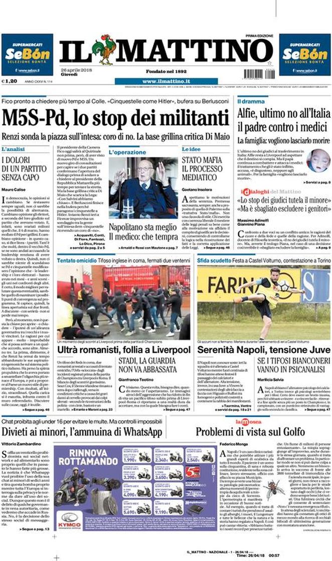 NewsCalcioIn Evidenza Rassegna stampa – L’edicola delle prime pagine sportive del 26 aprile By Giuseppe Sacco il Apr 26, 2018 - 08:15:20 0 Condividi Oggi in primo piano mettiamo le seguenti pagine Factory della Comunicazione 0 Condividi FacebookTwitterGoogle+ReddItWhatsAppPinterestE-mail