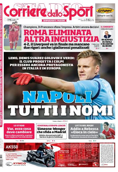 Il Napoli orienterà le proprie scelte attraverso idee che ha sviluppato e poi fronteggiando le eventuali emergenze ciò che il mercato costringerà ad affrontare: un fluidificante, con il congedo di Maggio, sarà indispensabile e Grimaldo (23 a settembre) appartiene a quei profili seducenti già avvicinati; l’esterno offensivo più accattivante resta Simone Verdi (26 a luglio), per il quale esiste da gennaio un accordo con il Bologna che potrebbe essere scongelato oppure no, dipenderà dal calciatore; mai sparito, né accadrà, Matteo Politano (25) ad agosto, laterale come Verdi però esclusivamente di destra. Ma sul taccuino di Giuntoli c’è altro: c’è Denis Suarez (24) del Barcellona; c’è Federico Chiesa (21 a ottobre), per il quale De Laurentiis si accomoderebbe in questo istante a (ri)parlare con la Fiorentina; c’è il russo Golovin (22 a giorni), centrocampista multiuso dello Cska di Mosca, ci sono anche i sampdoriani Torreira (22) e Praet (24) seguiti da un bel po’. E poi chissà! Magari sarà un anno zero…! Fonte: CdS