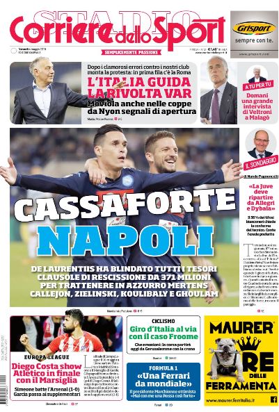 Punto e a capo: una stagione e tocca a Cavani, il Matador dei record, raggiungere Lavezzi a Parigi. Altro blitz romano di Leonardo dopo un incontro parigino con il manager dell’epoca, Triulzi, e nell’estate 2013 piovono 64 milioni nelle casse azzurre. A multipli di tre: come dicono i 90 milioni fruttati dall’addio di Higuain, alla Juve dal 2016 in mezzo alla tempesta. Un colpo al cuore di Napoli ma anche un vero colpo di mercato. Tre uomini e una gamba: da 186 milioni complessivi. Maledette, benedette clausole.
