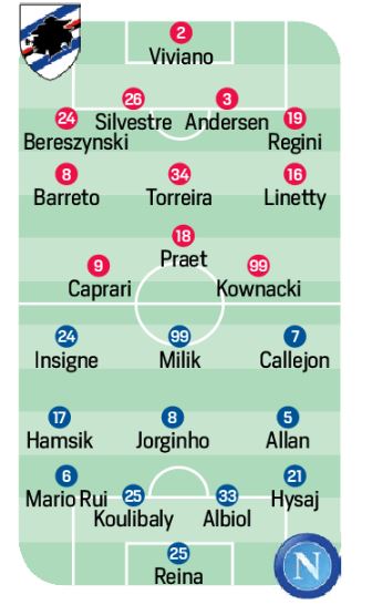 NewsCalcioRassegna Stampa Samp e Napoli: il Cds le mette in campo così By Giuseppe Sacco il Mag 11, 2018 - 09:30:39 0 Condividi Per il CdS l’unica sostituzione del Napoli potrebbe essere Milik al posto di Mertens Factory della Comunicazione 0 Condividi FacebookTwitterGoogle+ReddItWhatsAppPinterestE-mail
