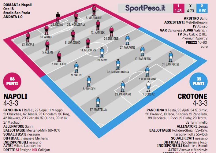 Napoli Crotone – Titolarissimi con passerella per tutti
