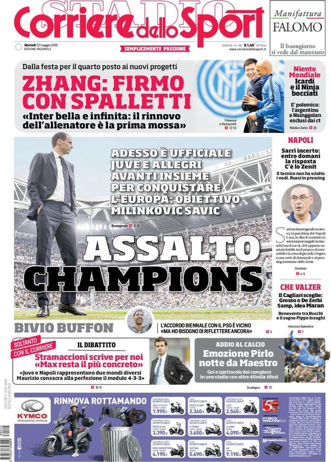 NewsCalcioIn Evidenza Rassegna stampa – L’edicola sportiva nazionale del 22 maggio By Giuseppe Sacco il Mag 22, 2018 - 07:55:42 0 Condividi Oggi in primo piano proponiamo queste pagine sportive Factory della Comunicazione 0 Condividi FacebookTwitterGoogle+ReddItWhatsAppPinterestE-mail