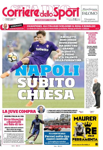 CdS Campania – “Subito Chiesa per il Napoli”. Si puntella anche la difesa