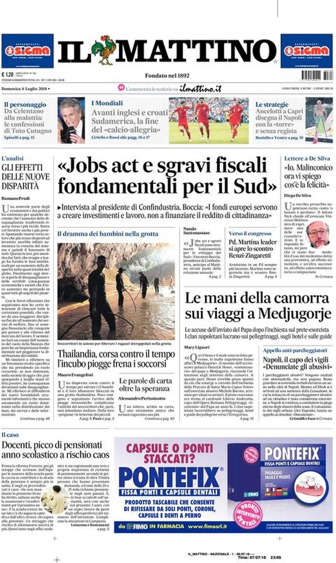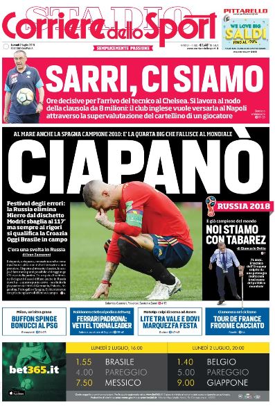 NewsCalcioIn Evidenza Rassegna stampa – L’edicola delle prime pagine del 5 giugno By Giuseppe Sacco il Giu 5, 2018 - 07:24:02 0 Condividi Oggi in primo piano sui quotidiani sportivi nazionali Factory della Comunicazione 0 Condividi FacebookTwitterGoogle+ReddItWhatsAppPinterestE-mail