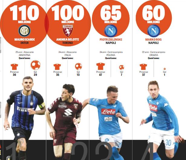Un’usanza nata in Spagna ma sempre piu’ in voga anche da noi. De Laurentiis inizio’ con Lavezzi, adesso ne ha otto. Per ben 265 milioni
