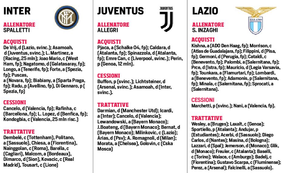 Senza categoria Grafico – Tutto mercato avversarie Napoli: acquisti, cessioni e svincolati By Giuseppe Sacco il Giu 9, 2018 - 22:00:54 0 Condividi Il Corriere dello Sport propone tutta la situazione delle principali squadre avversarie del Napoli Factory della Comunicazione 0 Condividi FacebookTwitterGoogle+ReddItWhatsAppPinterestE-mail