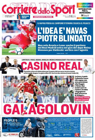 Keylor Navas ha trentuno anni (trentadue a dicembre) e quattro di questi li ha trascorsi al Real Madrid, tra cui l’ultimo di Ancelotti, in cui ha guardato le spalle a Iker Casillas, prima di diventare poi il titolare delle tre Champions consecutive. E’ una tentazione, una ipotesi, è una opzione da tener presente, consapevole che c’è un mercato per il momento paralizzato e comunque prossimo ad agitarsi ovunque, pure nelle aree di rigore, dove una serie di portieri attendono di scoprire il proprio destino. Nell’elenco del Napoli, Keylor Navas ci è entrato recentemente, nel momento stesso in cui è stato allargato il panorama di possibilità, e con la certezza che varie cose capiteranno, in breve. Fonte: CdS