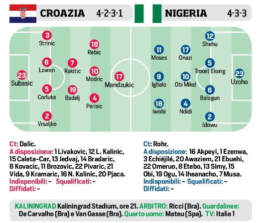 NewsCalcio Ore 21,00 – Mondiale: Croazia-Nigeria, le possibili formazioni By Giuseppe Sacco il Giu 16, 2018 - 18:00:20 0 Condividi Mondiale: Croazia-Nigeria, le possibili formazioni Factory della Comunicazione 0 Condividi FacebookTwitterGoogle+ReddItWhatsAppPinterestE-mail