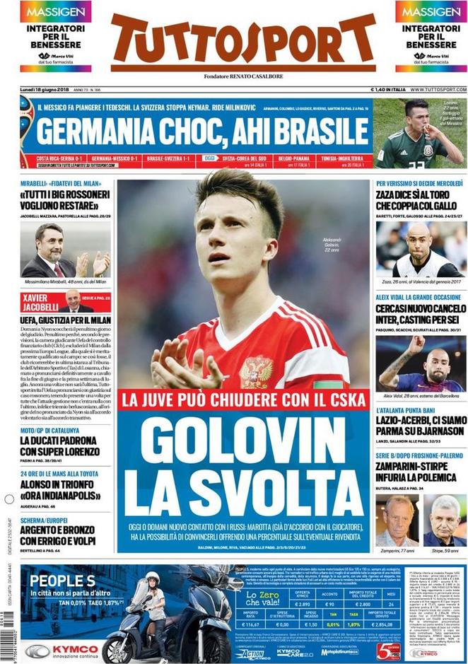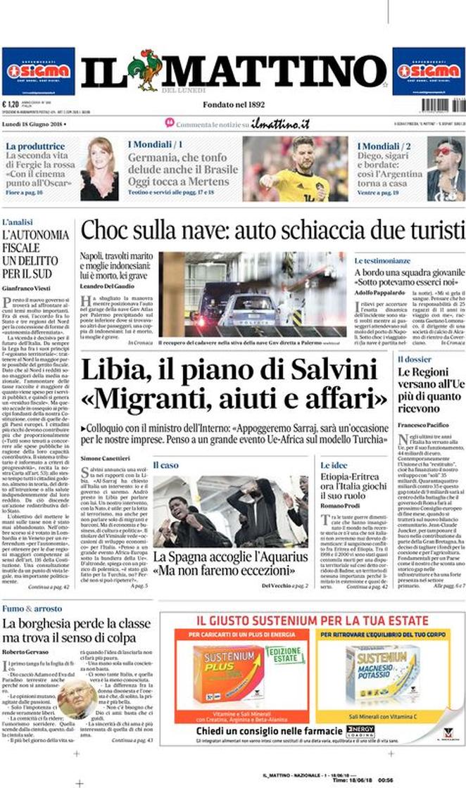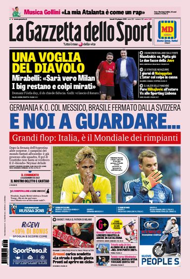 NewsCalcioMercato Rassegna stampa – L’edicola sportiva nazionale del 18 giugno By Giuseppe Sacco il Giu 18, 2018 - 07:20:35 0 Condividi Oggi in primo piano Factory della Comunicazione 0 Condividi FacebookTwitterGoogle+ReddItWhatsAppPinterestE-mail