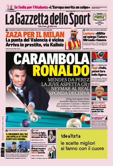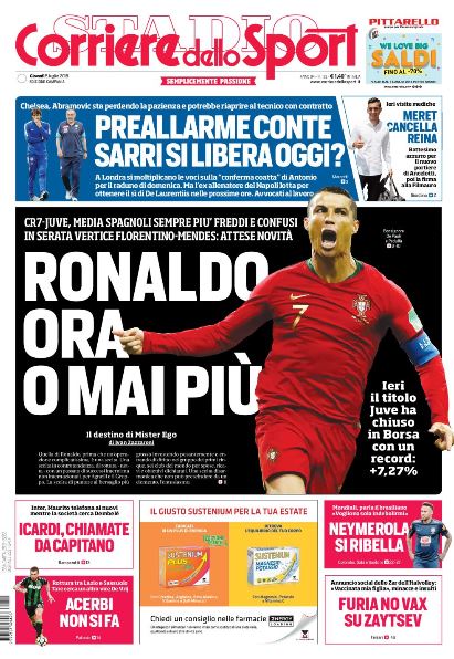 NewsCalcioIn Evidenza Rassegna stampa del 5 luglio. L’edicola sportiva delle prime pagine nazionali By Giuseppe Sacco il Lug 5, 2018 - 07:00:12 0 Condividi Oggi le prime pagine nazionali propongono in primo piano: Factory della Comunicazione 0 Condividi FacebookTwitterGoogle+ReddItWhatsAppPinterestE-mail
