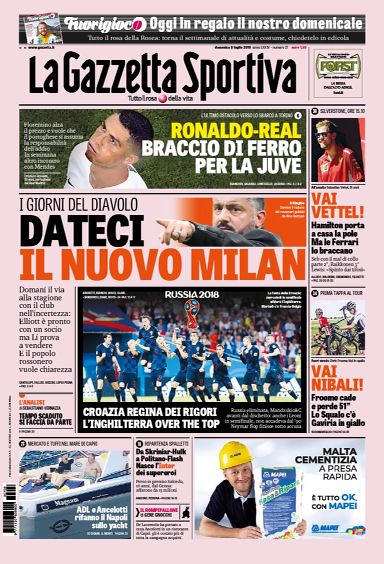 NewsCalcioIn Evidenza Rassegna stampa sportiva dell’8 luglio. L’edicola delle prime pagine nazionali By Giuseppe Sacco il Lug 8, 2018 - 07:30:16 0 Condividi In primo piano sulle prime pagine nazionali Factory della Comunicazione 0 Condividi FacebookTwitterGoogle+ReddItWhatsAppPinterestE-mail