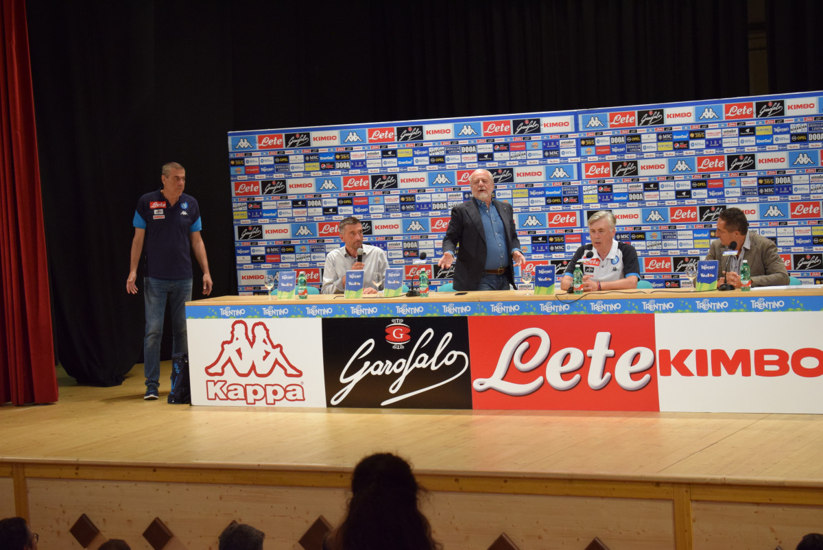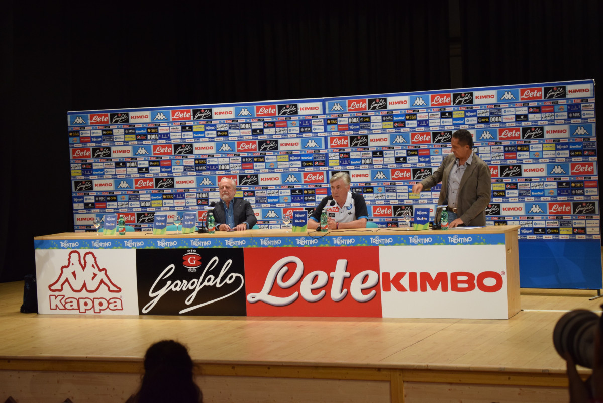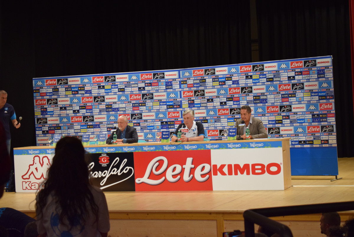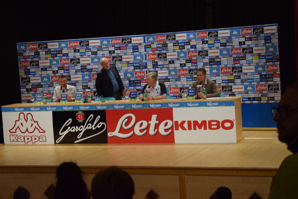 Dai nostri inviati Alessandro e Pino Sacco al Teatro di Dimaro alcuni scatti della prima conferenza stampa del mister Ancelotti e la presenza di De Laurentiis