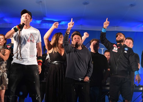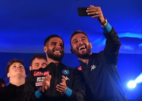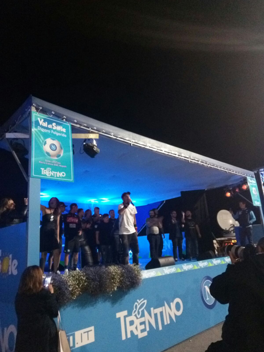 Ad assistere allo spettacolo c’erano anche Lorenzo e Roberto Insigne insieme al gruppo dei giovani della Primavera aggregati alla rosa in ritiro.Proprio i due fratelli Insigne, da buoni napoletani doc, sono saliti sul palco esibendosi tra danze improvvisate e canzoni al fianco degli artisti dello show, scatenando l’entusiasmo dell’intera piazza. Di seguito le foto del napolionline e della SSC Napoli: