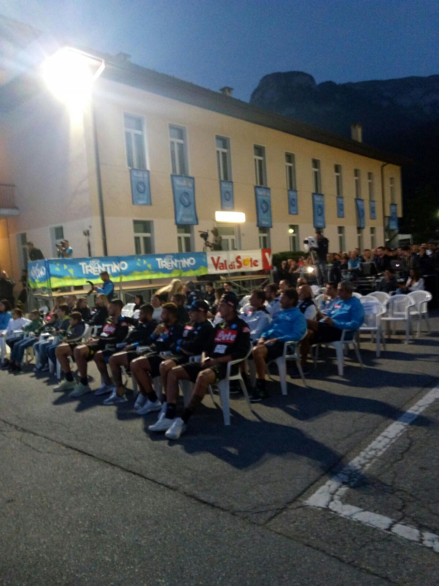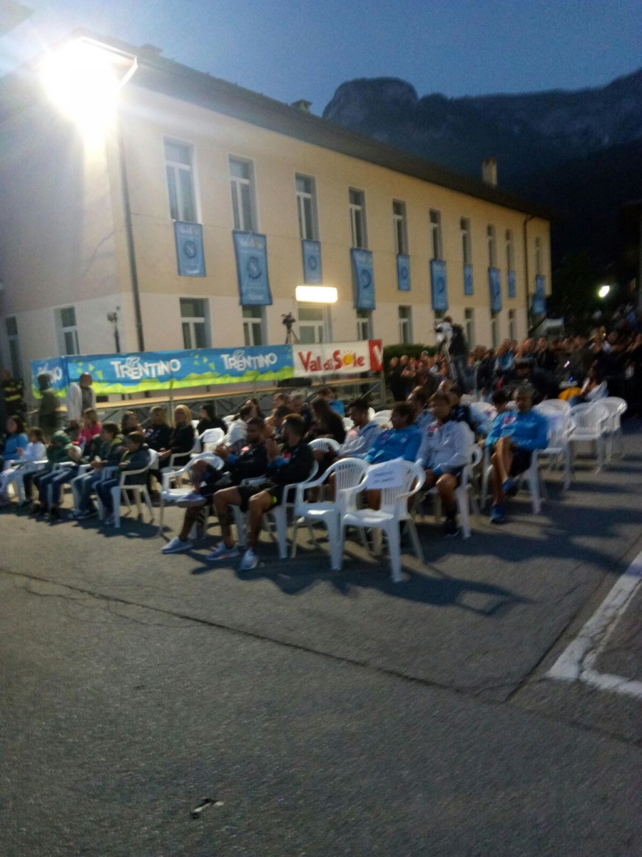 Serata all’insegna del “Made in Sud” nello scenario della Val di Sole. Come ormai da consolidata e graditissima tradizione è tornata in Trentino la comicità dello show tutto napoletano che continua a riscuotere grandissimo successo, animando il divertimento e l’allegria tra i tantissimi tifosi azzurri.Gli artisti si sono esibiti sul palco nella Piazza Madonna della Pace di Dimaro Folgarida, coinvolgendo il numeroso pubblico con i più famosi sketch e le più amate gag.