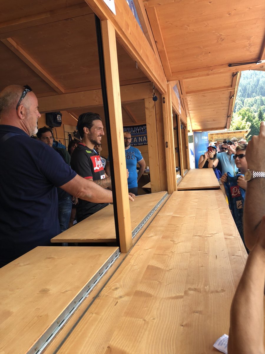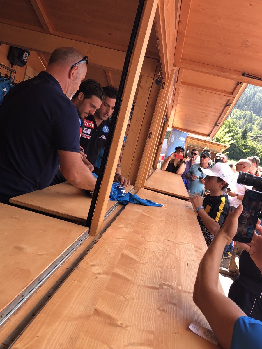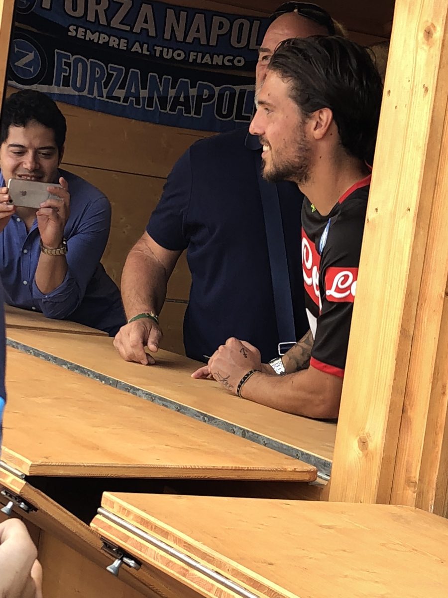 Oltre ad essere protagonista sul terreno di gioco e non solo quello d’allenamento, qui a Carciato, il nuovo acquisto del Napoli, Simone Verdi, si dedica anche ai tifosi. Oggi,infatti, l’esterno ex Bologna, ha dedicato del tempo ai sostenitori azzurri presenti a Dimaro, firmando autografi, facendosi fotografare e personalizzando le numerose maglie che i supporters partenopei gli offrivano…