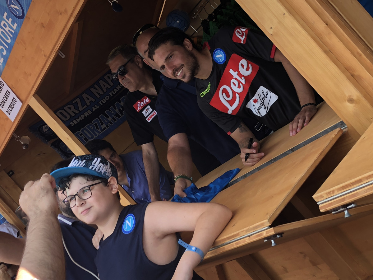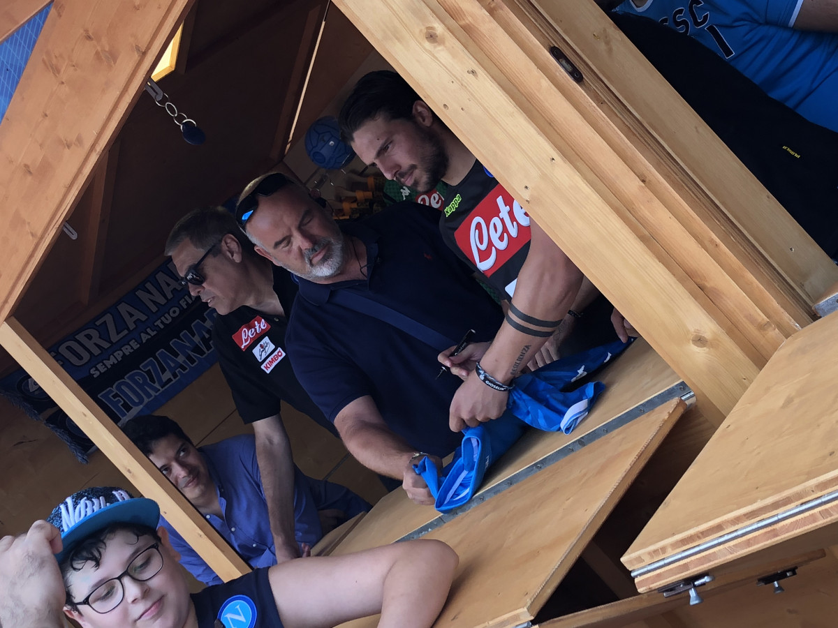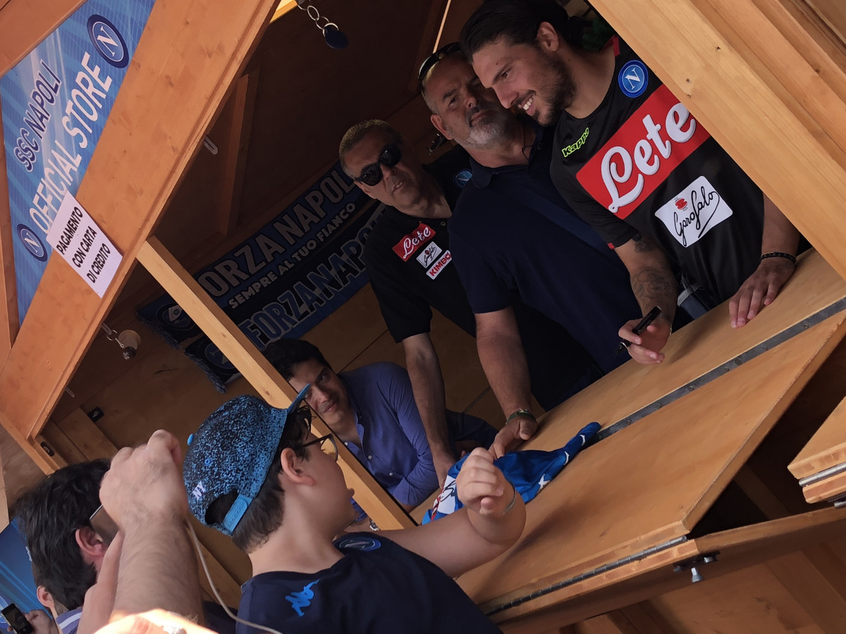 Oltre ad essere protagonista sul terreno di gioco e non solo quello d’allenamento, qui a Carciato, il nuovo acquisto del Napoli, Simone Verdi, si dedica anche ai tifosi. Oggi,infatti, l’esterno ex Bologna, ha dedicato del tempo ai sostenitori azzurri presenti a Dimaro, firmando autografi, facendosi fotografare e personalizzando le numerose maglie che i supporters partenopei gli offrivano…