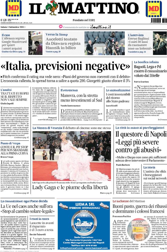 NewsCalcioIn Evidenza Rassegna stampa – L’edicola sportiva dell’ 1 settembre By Giuseppe Sacco il Set 1, 2018 - 08:00:19 0 Condividi Così oggi in primo piano sui quotidiani sportivi Factory della Comunicazione 0 Condividi FacebookTwitterGoogle+ReddItWhatsAppPinterestE-mail