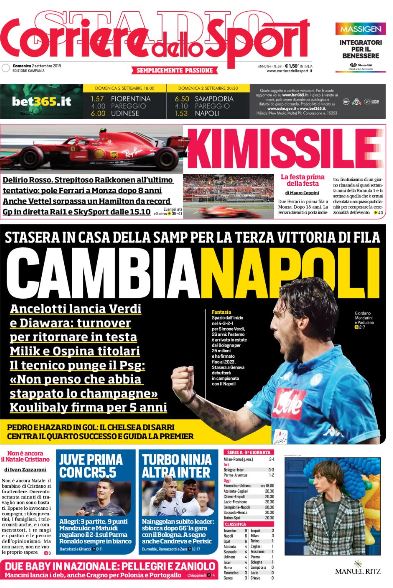 CdS Campania – “CAMBIA NAPOLI”. Novità di Ancelotti a Genova contro la Sampdoria