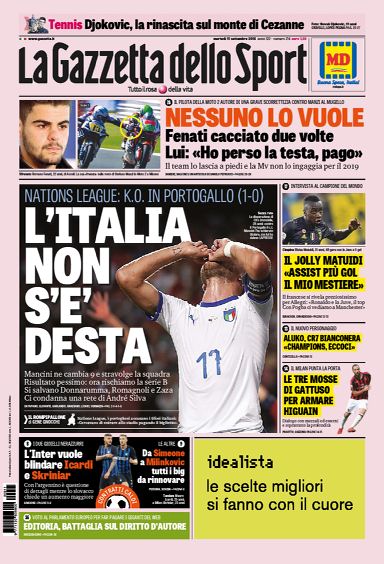 NewsCalcioIn Evidenza Rassegna stampa – L’edicola sportiva dell’ 11 settembre By Giuseppe Sacco il Set 11, 2018 - 07:45:13 0 Condividi Oggi in primo piano sui principali quotidiani sportivi nazionali Factory della Comunicazione 0 Condividi FacebookTwitterGoogle+ReddItWhatsAppPinterestE-mail