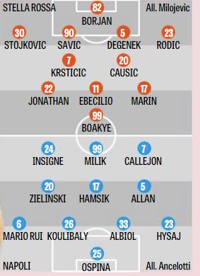 Milik preferito ad uno spento Mertens. Il portiere di Coppa sarà l’esperto Ospina. Tosto il centrocampo, così come la difesa. Ecco la formazione ideata dala Gazzetta