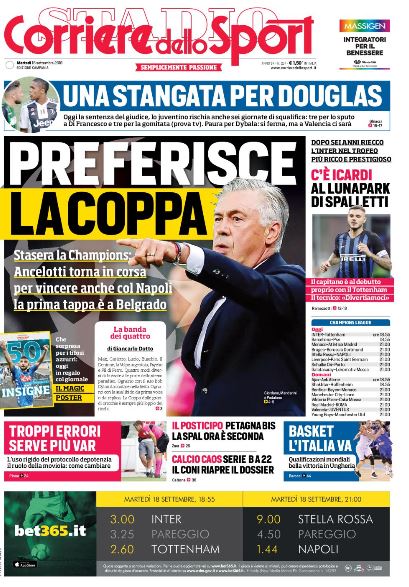 CdS Campania – Ancelotti preferisce la Champions, prima tappa Belgrado