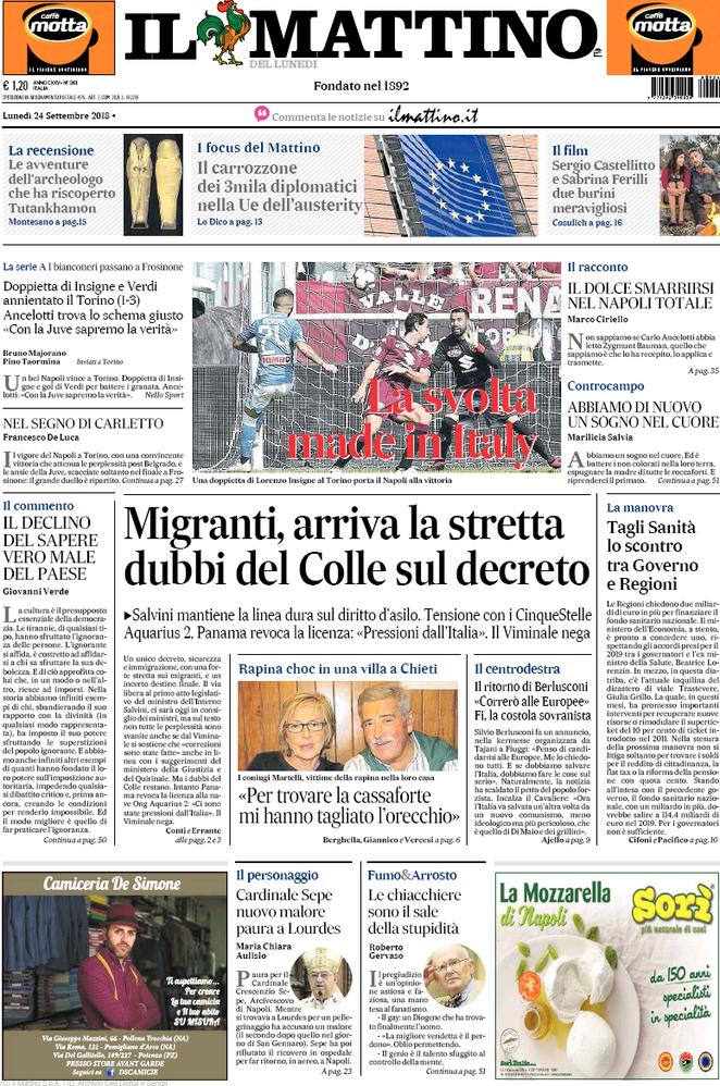 Il Mattino – E’ un Napoli made in Italy, prima volta per Verdi