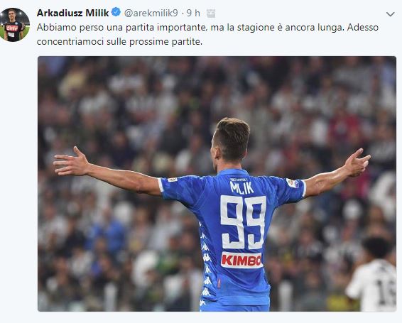 Il Napoli non si ferma a Torino, il Napoli guarda avanti e si proietta già alla prossima. Lo dice e lo conferma via social Arkadius Milik. Show must go on…come il campionato!