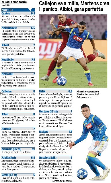 NewsCalcioRassegna Stampa Il CdS dà le sue valutazioni al Napoli: Allan è l’uomo ovunque, Koulibaly implacabile By Giuseppe Sacco il Ott 4, 2018 - 09:00:32 0 Condividi Queste le valutazioni di Fabio Mandarini, Factory della Comunicazione C dSNapolipagelle 0 Condividi FacebookTwitterGoogle+ReddItWhatsAppPinterestE-mail
