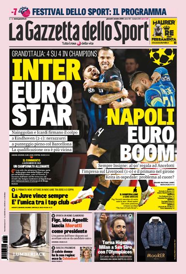 Rassegna stampa. Gazzetta: “NAPOLI EURO BOOM”