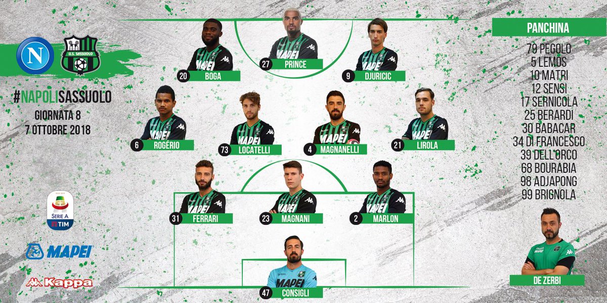 (3-4-3) Consigli; Marlon, Magnani, Ferrari; Lirola, Magnanelli, Locatelli, Rogerio; Djuricic, Boateng, Boga.