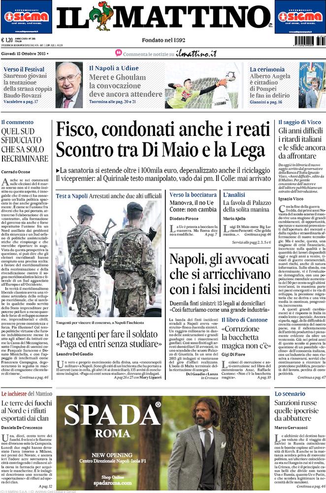 NewsCalcioIn Evidenza Rassegna stampa del 18 ottobre. Prime pagine in edicola By Giuseppe Sacco il Ott 18, 2018 - 07:45:11 0 Condividi Oggi queste le principali prime pagine sportive nazionali Factory della Comunicazione EdicolaPagineprimeRassegna 0 Condividi FacebookTwitterGoogle+ReddItWhatsAppPinterestE-mail