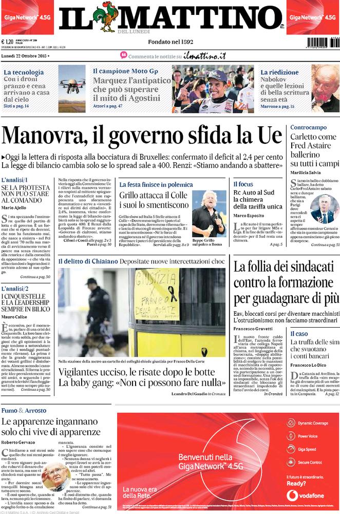 NewsCalcioIn Evidenza Rassegna stampa del 22 ottobre. L’edicola sportiva nazionale By Giuseppe Sacco il Ott 22, 2018 - 07:20:46 0 Condividi Oggi in primo piano sui quotidiani nazionali Factory della Comunicazione EdicolaPagineprimaRassegna 0 Condividi FacebookTwitterGoogle+ReddItWhatsAppPinterestE-mail