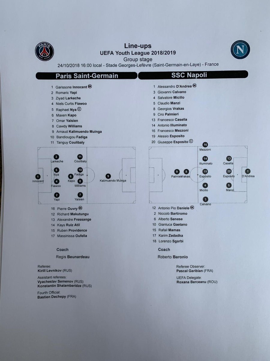 Oggi pomeriggio alle ore 16,00, presso lo stadio “George Lefevre”, si giocherà la partita di Youth League, la terza del girone C, tra i padroni di casa del Psg e il Napoli di Roberto Baronio. La compagine francese ha tre punti in classifica, successo interno contro la Stella Rossa, mentre gli azzurrini due pareggi contro i serbi e contro il Liverpool. I partenopei vogliono proseguire nel percorso di crescita in campo internazionale. Ilnapolionline.com vi terrà informati in tempo reale.