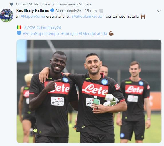 NewsCalcio Messaggio di KK a Ghoulam: “Bentornato fratello” By Giuseppe Sacco il Ott 27, 2018 - 16:19:56 0 Condividi Così gli messaggia su twitter il suo amico e compagno di difesa Factory della Comunicazione 0 Condividi FacebookTwitterGoogle+ReddItWhatsAppPinterestE-mail