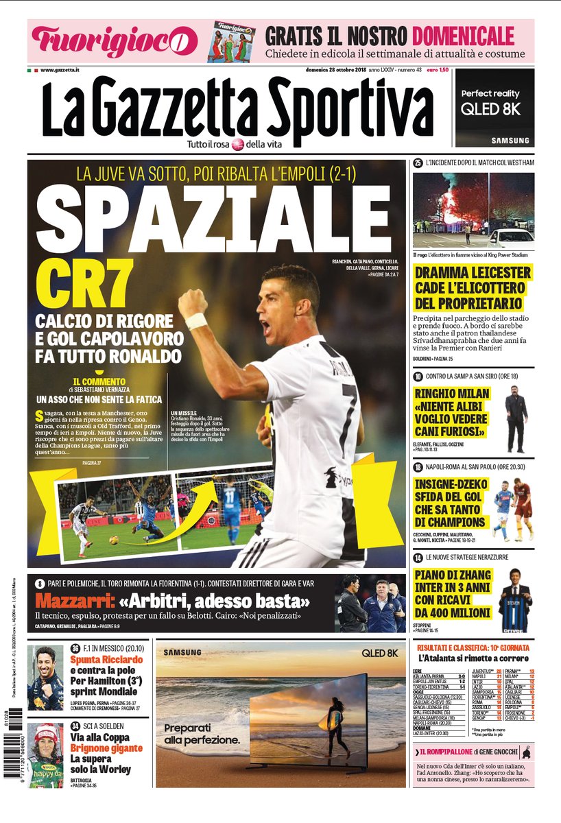 NewsCalcio Edicola sportiva del 28 ottobre. Le prime pagine nazionali By Giuseppe Sacco il Ott 28, 2018 - 08:00:32 0 Condividi Oggi in primo piano sulle principali testtate nazionali: Factory della Comunicazione Edic olaPagineprimeRassegna 0 Condividi FacebookTwitterGoogle+ReddItWhatsAppPinterestE-mail
